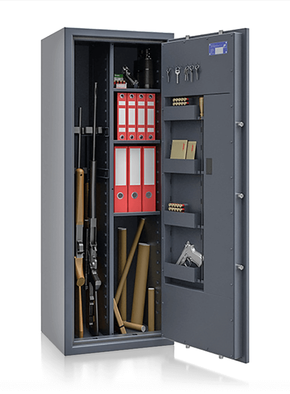 In diese Kategorie fallen u.a. auch Wertschutzschränke, Waffenschränke, Dokumentenschränke, feuersichere Schränke. Diese Schränke haben in der Regel im Vergleich zum Wand- oder Möbeleinsatztresor ein wesentlich größeres Aufnahmevolumen.