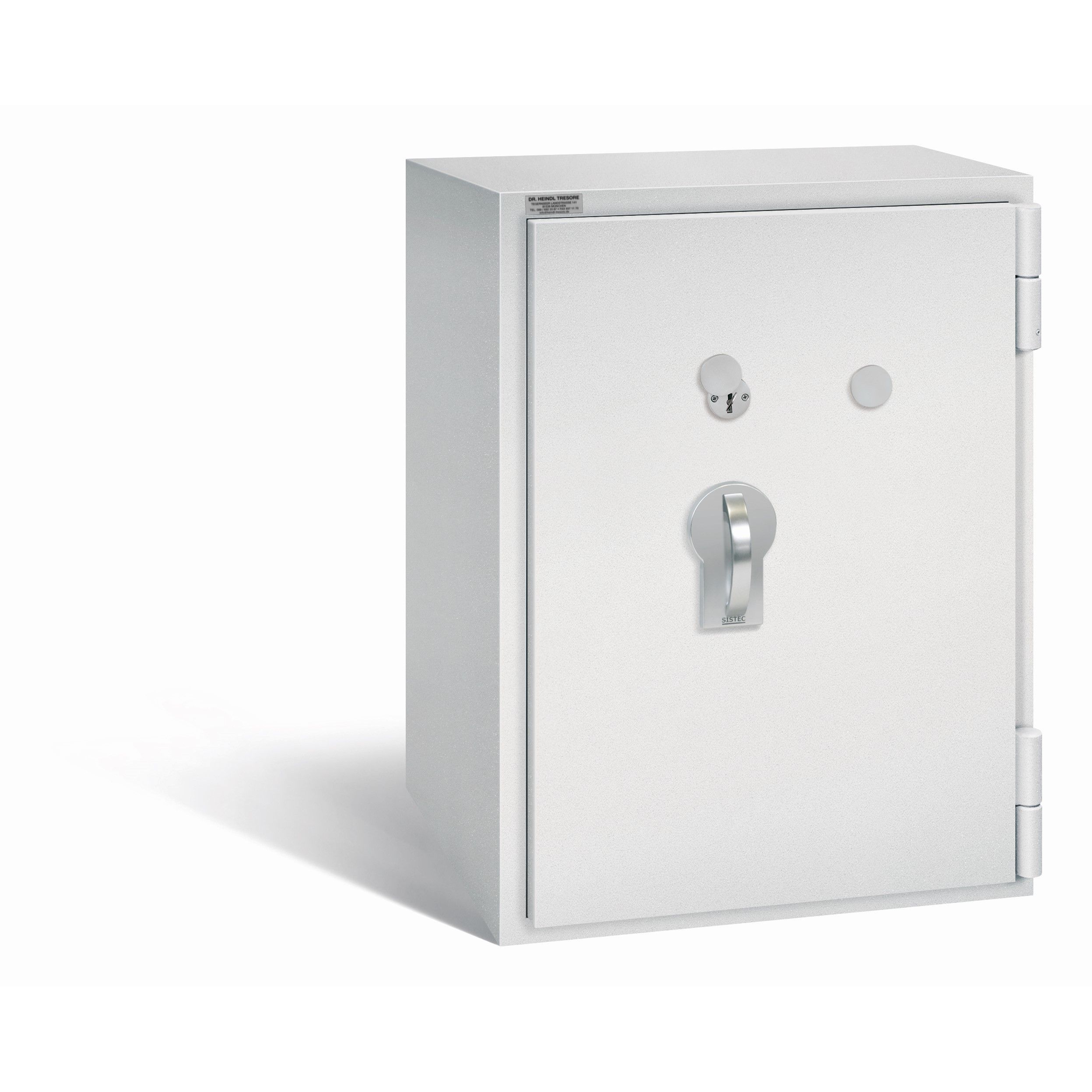 - Serienmäßig ist der Tresor mit zwei Doppelbart-Sicherheitsschlössern (je 2 Schlüssel) ausgestattet.
