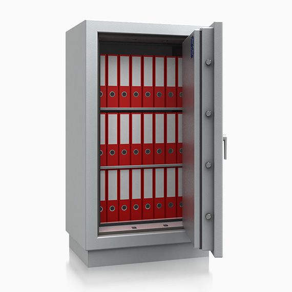 - Durch Füllung mit feuersicherem Beton und dem vierseitig umlaufenden Feuerfalz ist ein höchster Feuerschutz gegeben. Darin aufbewahrte Dokumente, Akten, Geld etc. sind optimal vor Bränden und Löschwasser geschützt.