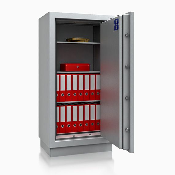 • Durch Füllung mit feuersicherem Beton und dem vierseitig umlaufenden Feuerfalz ist ein höchster Feuerschutz gegeben. Darin aufbewahrte Dokumente, Akten, Geld etc. sind optimal vor Bränden und Löschwasser geschützt.