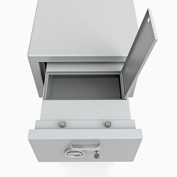 - Eine Rückholsicherung und die Möglichkeit die Schublade zu verschließen verhindern die unbefugte Entnahme des eingeworfenen Gegenstands.