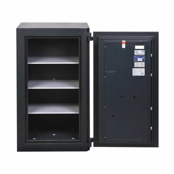 - Allseitig mehrwandiger Korpus. Die mehrwandige Konstruktion garantiert einen definierten Einbruchschutz gegen Angriffe mit mechanischen und thermisch wirkenden Einbruchwerkzeugen. Darüber hinaus verfügt die Modellreihe über einen Explosionsschutz und über eine zusätzliche Notverriegelung, die in der Tür aktiviert wird.