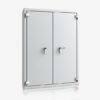 - Durch Füllung mit feuersicherem Beton und dem vierseitig umlaufenden Feuerfalz ist ein hoher Feuerschutz. Aufgrund der Quelldichtungen ist der Tresor zusätzlich gegen Löschwasser geschützt.