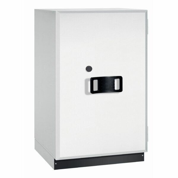 - Durch Füllung mit einer Kombination aus neuartigen Isolierstoffen und dem vierseitig umlaufenden Labyrinth-Feuerfalz mit Dichtungen ist ein extrem hoher Feuer- und Löschwasserschutz speziell für digital abgespeicherte Daten gegeben. Die darin aufbewahrten elektromagnetischen Datenträger, Dokumente etc. sind optimal vor Bränden und Löschwasser geschützt. Die Schränke wurden an der TU Braunschweig erfolgreich einer Feuerwiderstands- und Sturzprüfung, Dauer 2 Stunden, bis 1090°C, unterzogen.