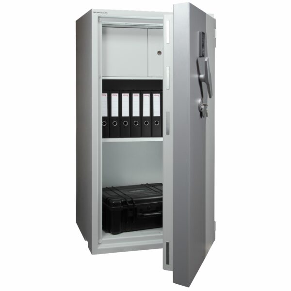 Wert- und Feuerschutztresor zur Lagerung von Wertgegenständen und Dokumenten.