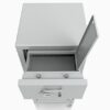 - Eine Rückholsicherung und die Möglichkeit die Schublade zu verschließen verhindern die unbefugte Entnahme des eingeworfenen Gegenstands.