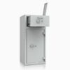 - Serienmäßig an der Entnahmetür und Einwurfschublade mit je einem Doppelbart-Sicherheitsschloss VdS Klasse II (2 Schlüssel) ausgestattet.
