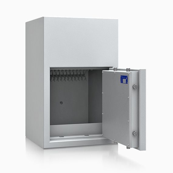• Serienmäßig an der Entnahmetür mit einem Doppelbart-Sicherheitsschloss VdS Klasse I (2 Schlüssel) ausgestattet und an der Einwurfschublade ohne Verschluss.