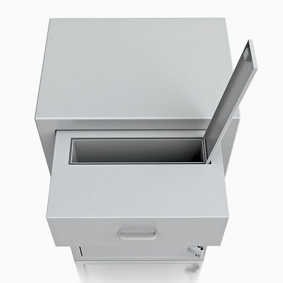 - Eine Rückholsicherung und die Möglichkeit die Schublade zu verschließen verhindern die unbefugte Entnahme des eingeworfenen Gegenstands.