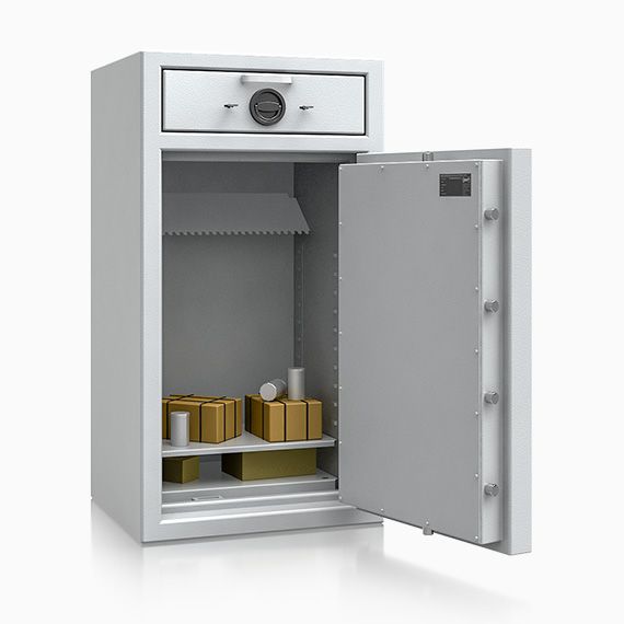 - Einwurf- / Deposittresor mit Einwurfschublade.