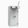 - Serienmäßig an der Entnahmetür mit einem Doppelbart-Sicherheitsschloss VdS Klasse II (2 Schlüssel mit 1 starren und 1 Gelenkschlüssel, Länge 170 mm) und einem zusätzlichem mechanischem Zahlenkombinationsschloss und an der Einwurfschublade mit zwei Doppelbart-Sicherheitsschlössern VdS Klasse II (je 2 Schlüssel, Länge 170 mm) ausgestattet.