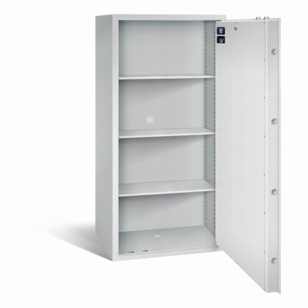 - Der Tresor ist mit einem Notverriegelungssystem versehen und das Schloss ist speziell bohrgeschützt.