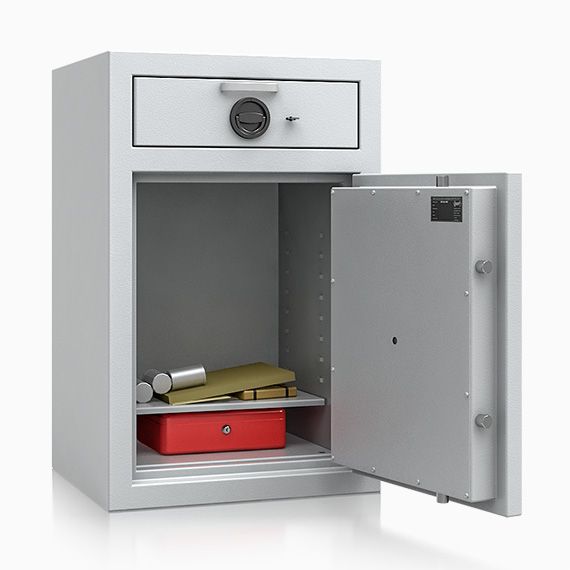 - Einwurf- / Deposittresor mit Einwurfschublade.