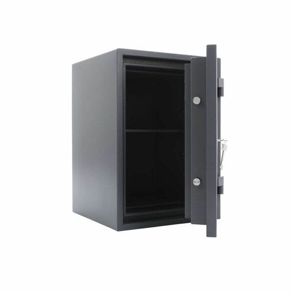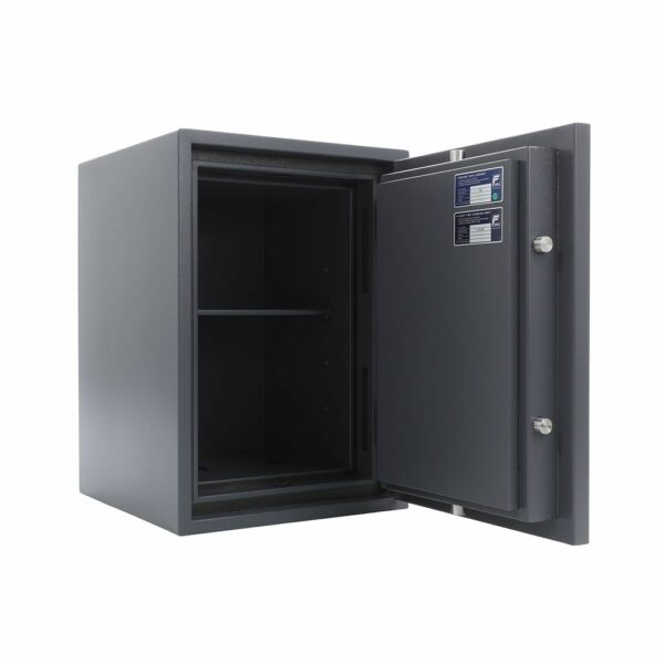 - Der Tresor ist mit einem Notverriegelungssystem versehen und das Schloss ist speziell bohrgeschützt.