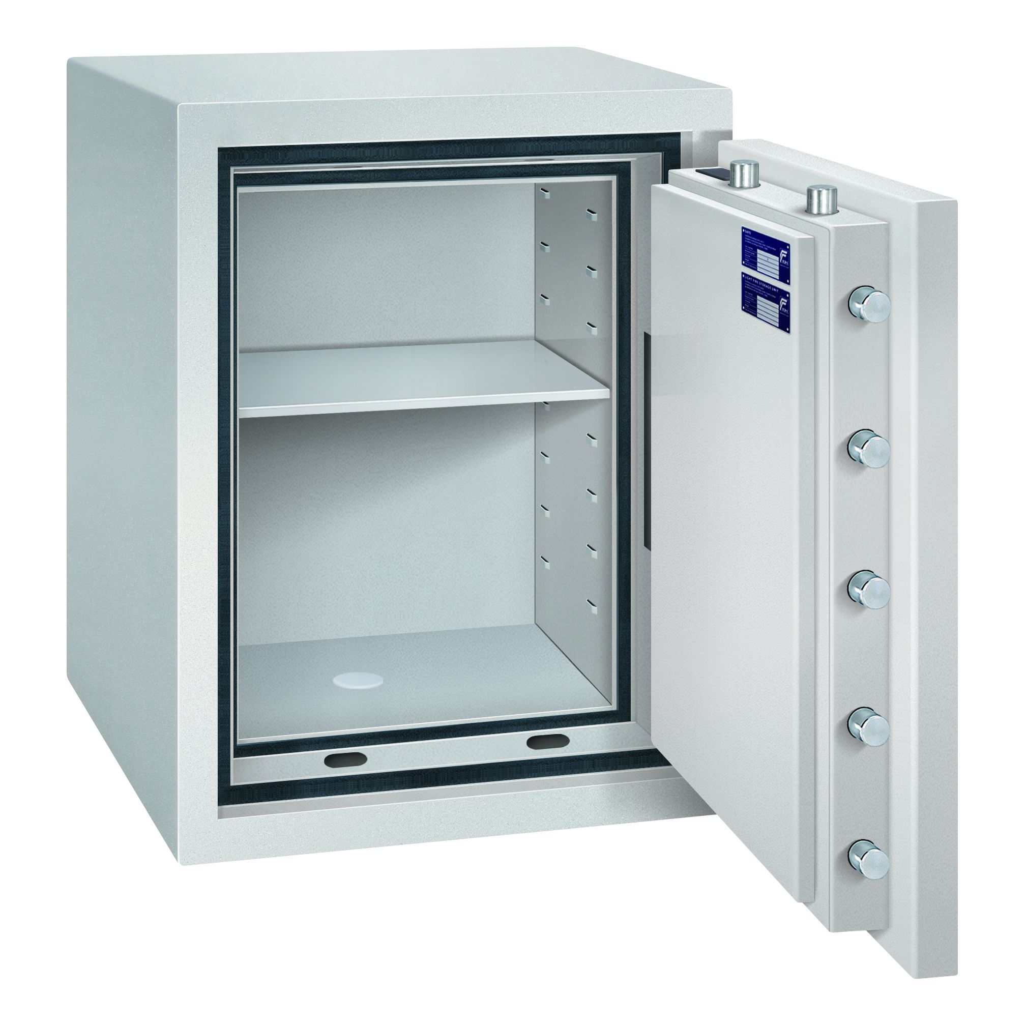 - Der Tresor ist mit einem Notverriegelungssystem versehen und das Schloss ist speziell bohrgeschützt.