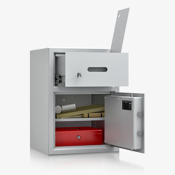 - Einwurf- / Deposittresor mit Einwurfschublade (200 mm hoch mit Griffmulde).