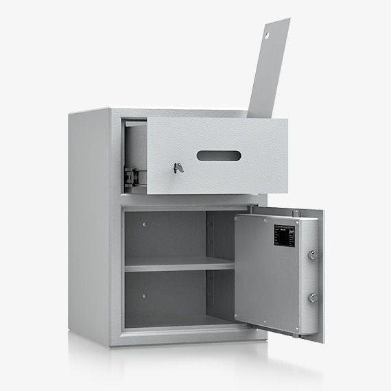 Einwurf- / Deposittresor mit Einwurfschublade (200 mm hoch mit Griffmulde).