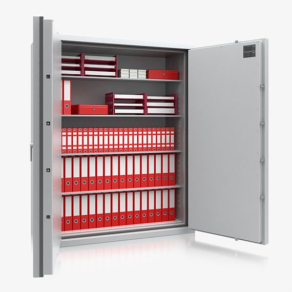 - Die mehrwandige Konstruktion mit hochfester Spezialbetonfüllung garantiert einen definierten Einbruchschutz gegen Angriffe mit mechanischen und thermisch wirkenden Einbruchwerkzeugen.