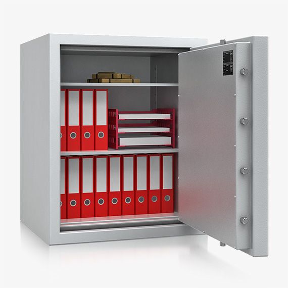 • Durch Füllung mit feuersicherem Beton und dem vierseitig umlaufenden Feuerfalz ist ein hoher Feuerschutz gegeben. Darin aufbewahrte Dokumente, Akten, Geld etc. optimal vor Bränden und Löschwasser geschützt.