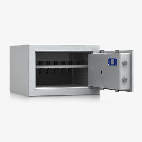 Kurzwaffentresor zur Lagerung von unbegrenzt vielen Kurzwaffen und Munition. Die Besonderheit bei dieser Modellreihe sind Verschwindscharniere und versenkte Beschläge (Griff + Schloss).