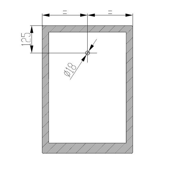 - Vorbereitet zur Montage am Boden mit einer Bohrung und einer Bohrung in der Rückwand (nicht durchgebohrt).