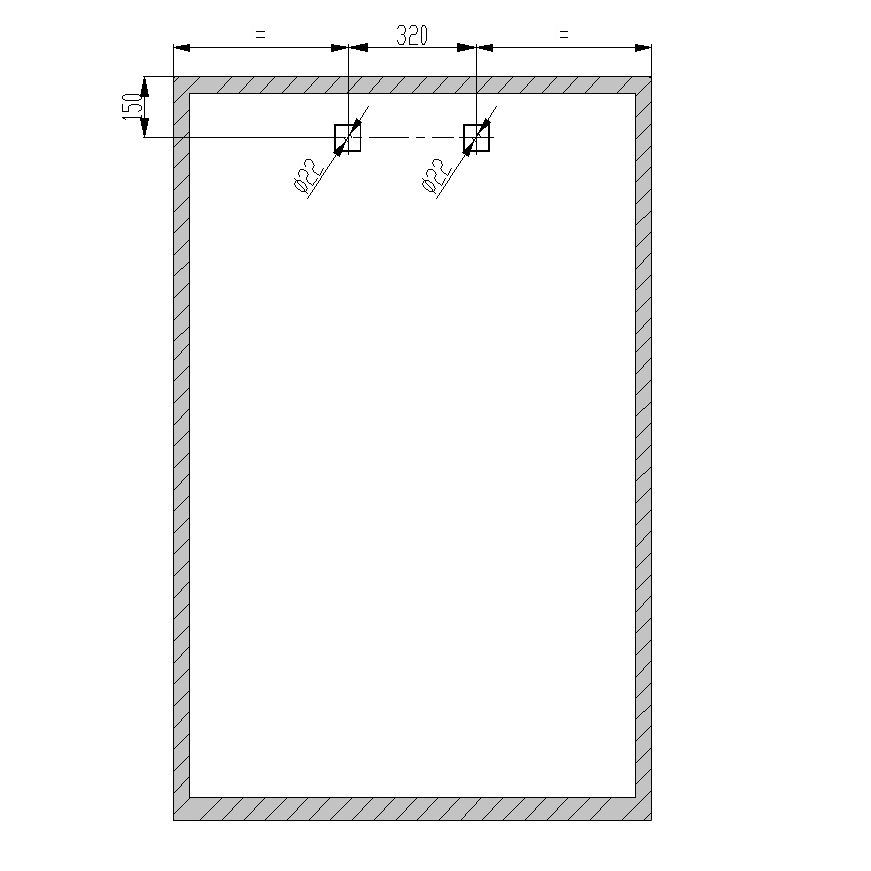 - Vorbereitet zur Montage am Boden mit einer Bohrung und einer Bohrung in der Rückwand (nicht durchgebohrt).