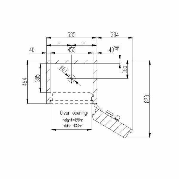 - Vorbereitet zur Montage am Boden mit einer Bohrung und einer Bohrung in der Rückwand (nicht durchgebohrt).