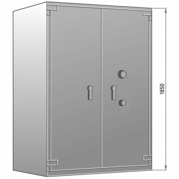 • Korpus und Tür mehrwandig mit hochfester Spezialbetonfüllung, Türstärke 120 mm.