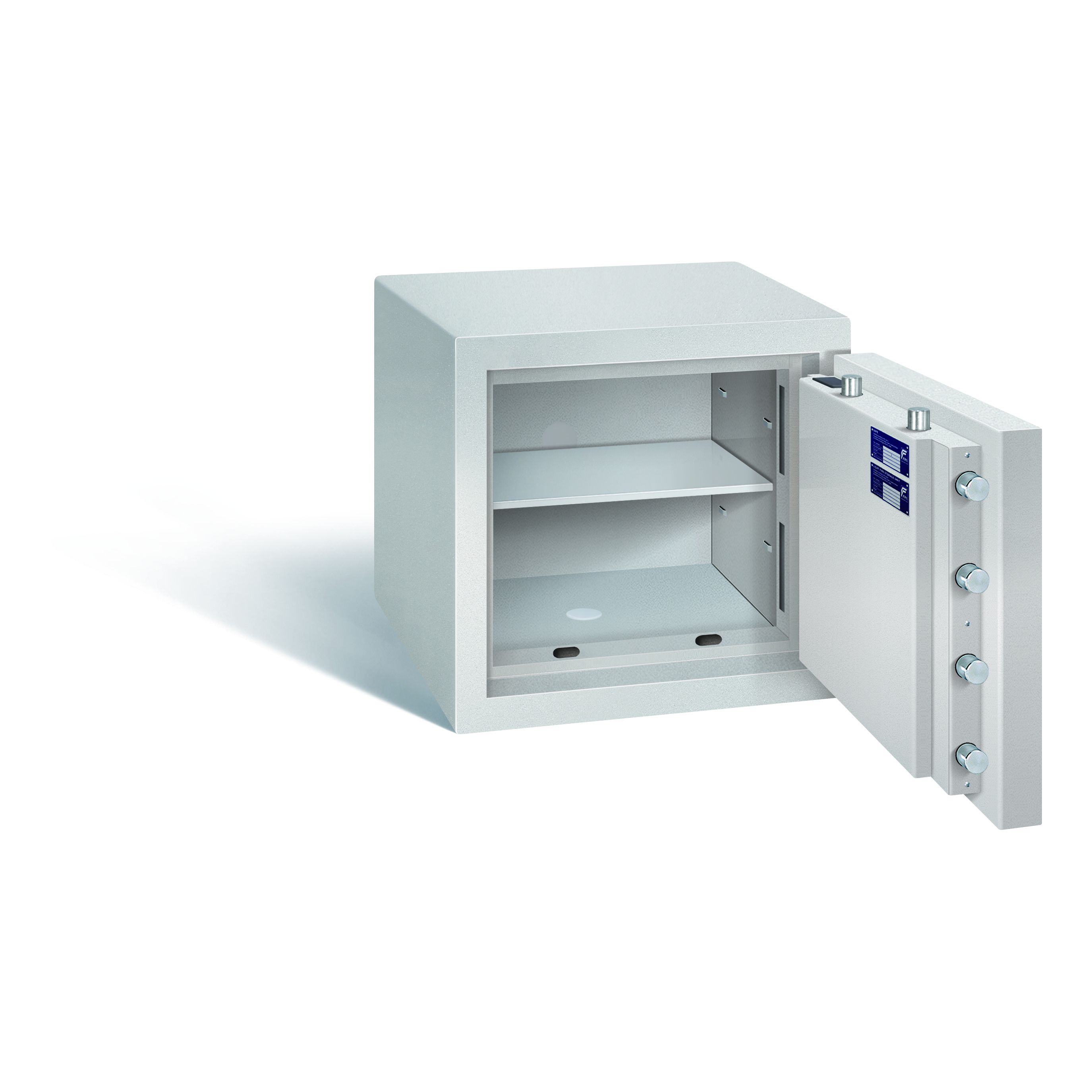 - Der Tresor ist mit einem Notverriegelungssystem versehen und das Schloss ist speziell bohrgeschützt.