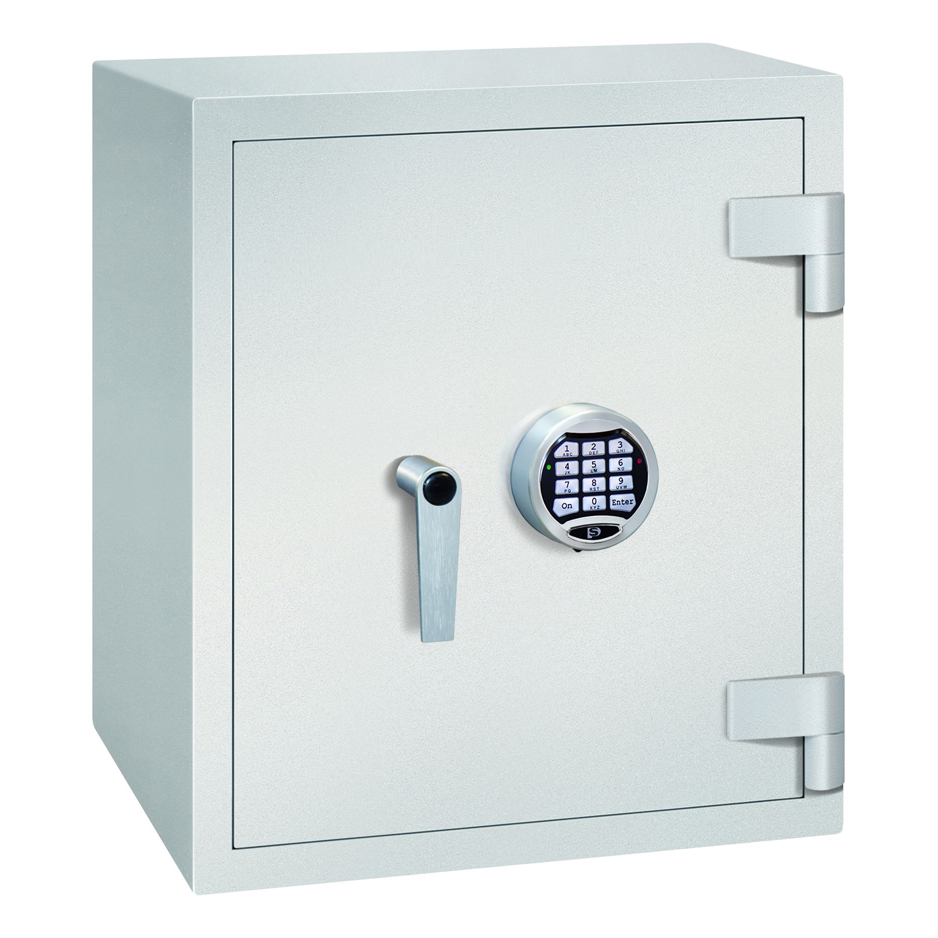 - Durch Füllung mit patentiertem speziellen Ultra-Hochleistungsbeton ist eine hohe Einbruchsicherheit bei vergleichsweise geringem Gewicht gegeben. Zusätzlich ist in Kombination mit dem vierseitig umlaufenden Feuerfalz ist ein hoher Feuerschutz gegeben. Darin aufbewahrte Dokumente, Akten, Geld etc. sind optimal vor Bränden und Löschwasser geschützt.