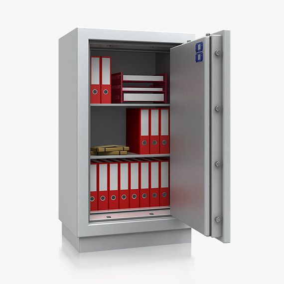 • Durch Füllung mit feuersicherem Beton und dem vierseitig umlaufenden Feuerfalz ist ein höchster Feuerschutz gegeben. Darin aufbewahrte Dokumente, Akten, Geld etc. sind optimal vor Bränden und Löschwasser geschützt.