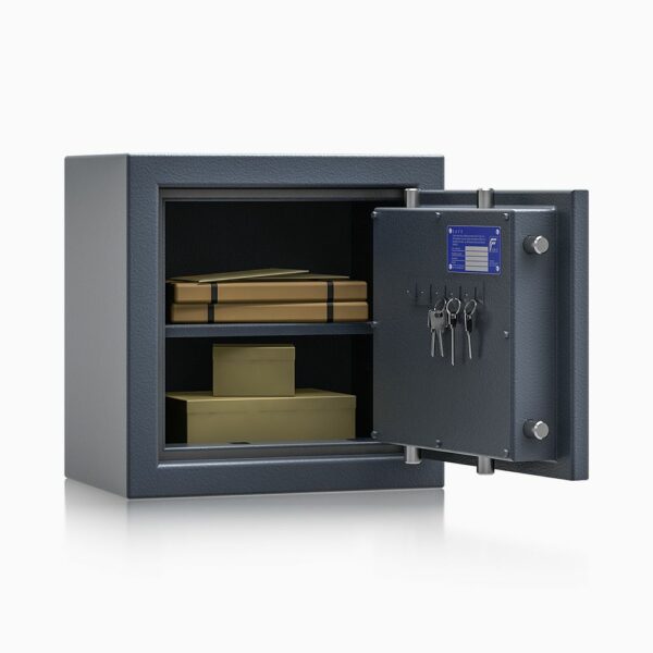 Wertschutztresor zur Lagerung von Wertgegenständen und Dokumenten. Durch spezielles Füllmaterial haben diese Tresore ein geringes Gewicht und bieten trotzdem einen guten Schutz gegen Einbrüche.