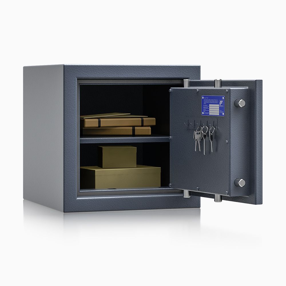 Wertschutztresor zur Lagerung von Wertgegenständen und Dokumenten. Durch spezielles Füllmaterial haben diese Tresore ein geringes Gewicht und bieten trotzdem einen guten Schutz gegen Einbrüche.