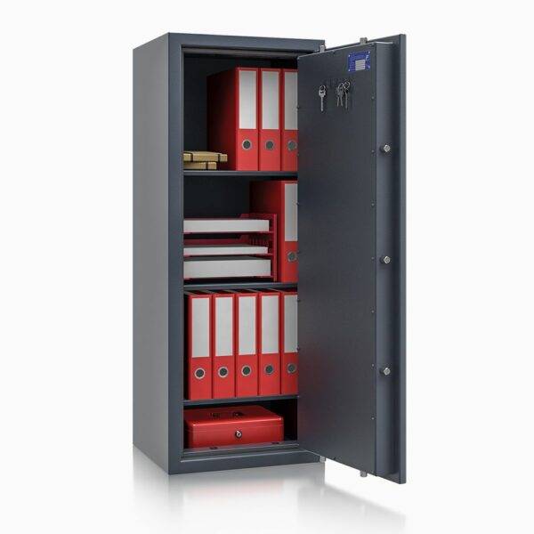 Wertschutztresor zur Lagerung von Wertgegenständen und Dokumenten. Durch spezielles Füllmaterial haben diese Tresore ein geringes Gewicht und bieten trotzdem einen guten Schutz gegen Einbrüche.