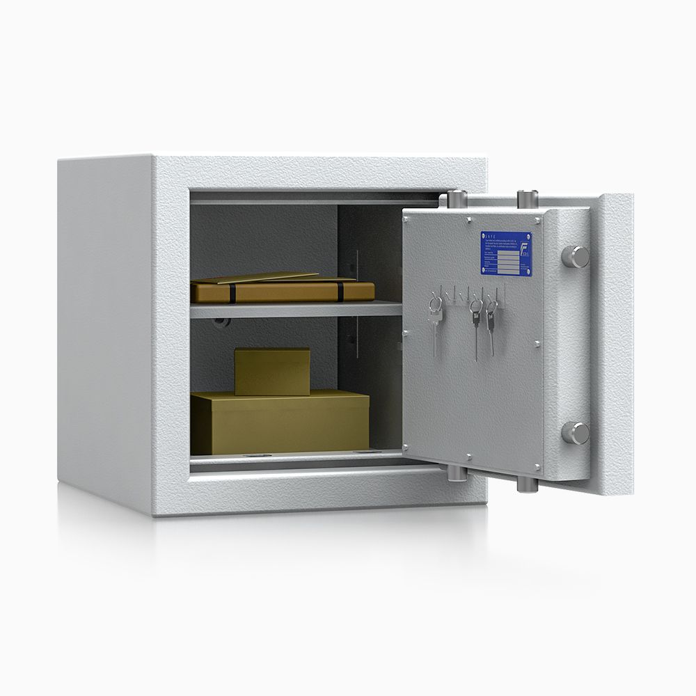 Wertschutztresor zur Lagerung von Wertgegenständen und Dokumenten. Durch spezielles Füllmaterial haben diese Tresore ein geringes Gewicht und bieten trotzdem einen guten Schutz gegen Einbrüche.