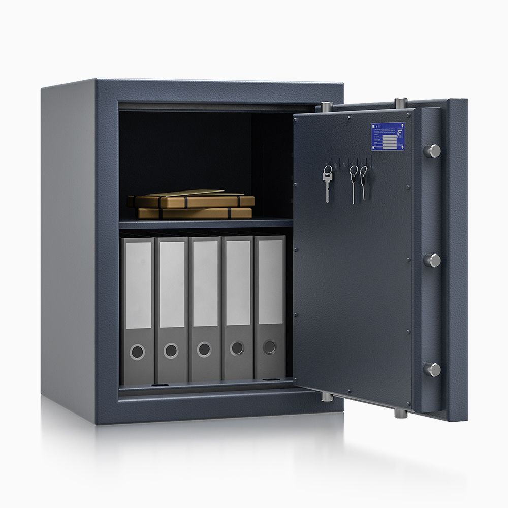 Wertschutztresor zur Lagerung von Wertgegenständen und Dokumenten. Durch spezielles Füllmaterial haben diese Tresore ein geringes Gewicht und bieten trotzdem einen guten Schutz gegen Einbrüche.