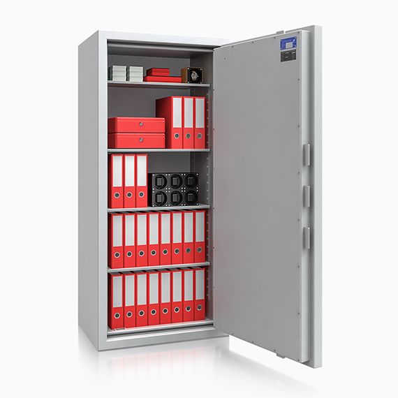 - Die mehrwandige Konstruktion mit hochfester Spezialbetonfüllung garantiert einen definierten Einbruchschutz gegen Angriffe mit mechanischen und thermisch wirkenden Einbruchwerkzeugen.