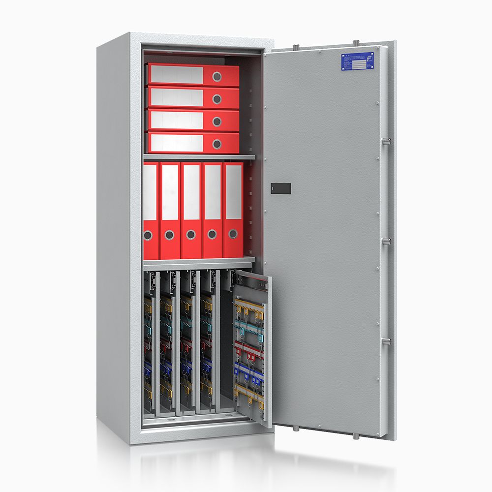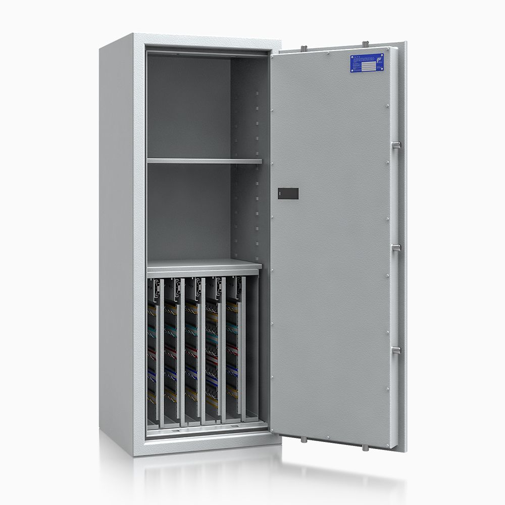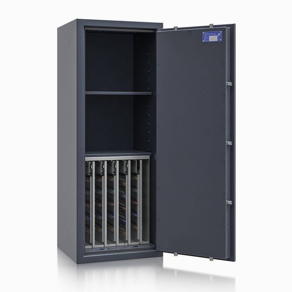 - Dank zusätzlicher Fachböden in Tresoren mit Schlüsseleinsatzsystemen, kann die Serie TZ-S4K zusätzlich zur Aufbewahrung von Dokumentenordnern oder Wertgegenständen verwendet werden. Die höhenverstellbaren Einlegeböden in den Tresoren ermöglichen eine individuelle Anordnung der Innenausstattung des Tresors und seine Anpassung an die Aufbewahrung von Aktenordnern unterschiedlicher Dicke.