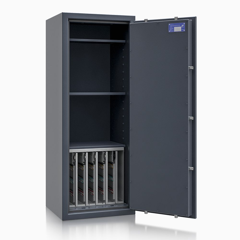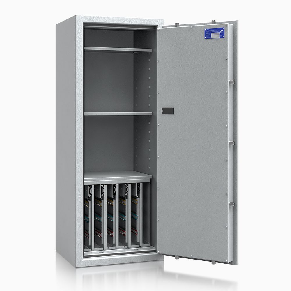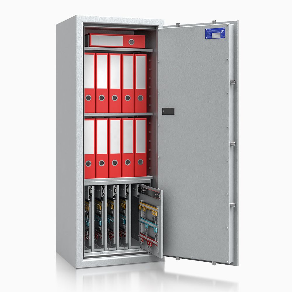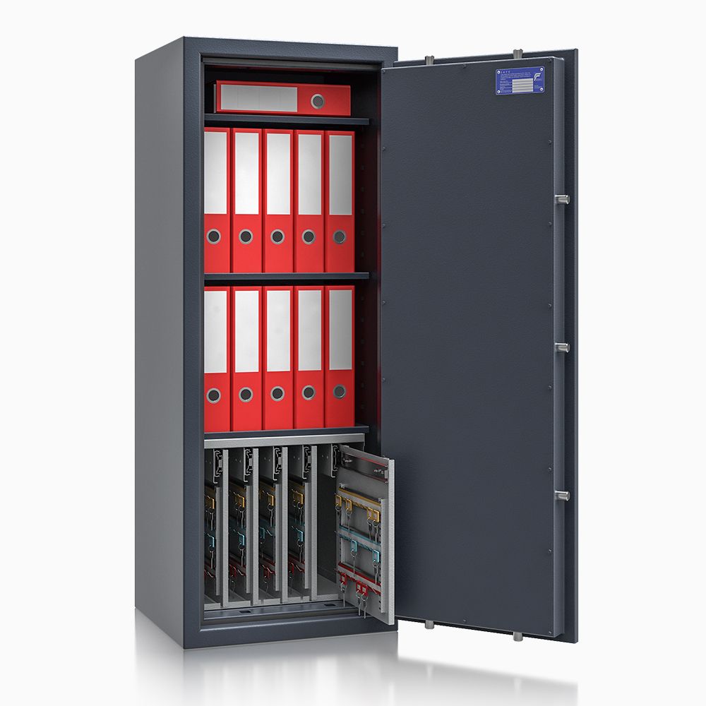 - Dank zusätzlicher Fachböden in Tresoren mit Schlüsseleinsatzsystemen, kann die Serie TZ-S4K zusätzlich zur Aufbewahrung von Dokumentenordnern oder Wertgegenständen verwendet werden. Die höhenverstellbaren Einlegeböden in den Tresoren ermöglichen eine individuelle Anordnung der Innenausstattung des Tresors und seine Anpassung an die Aufbewahrung von Aktenordnern unterschiedlicher Dicke.