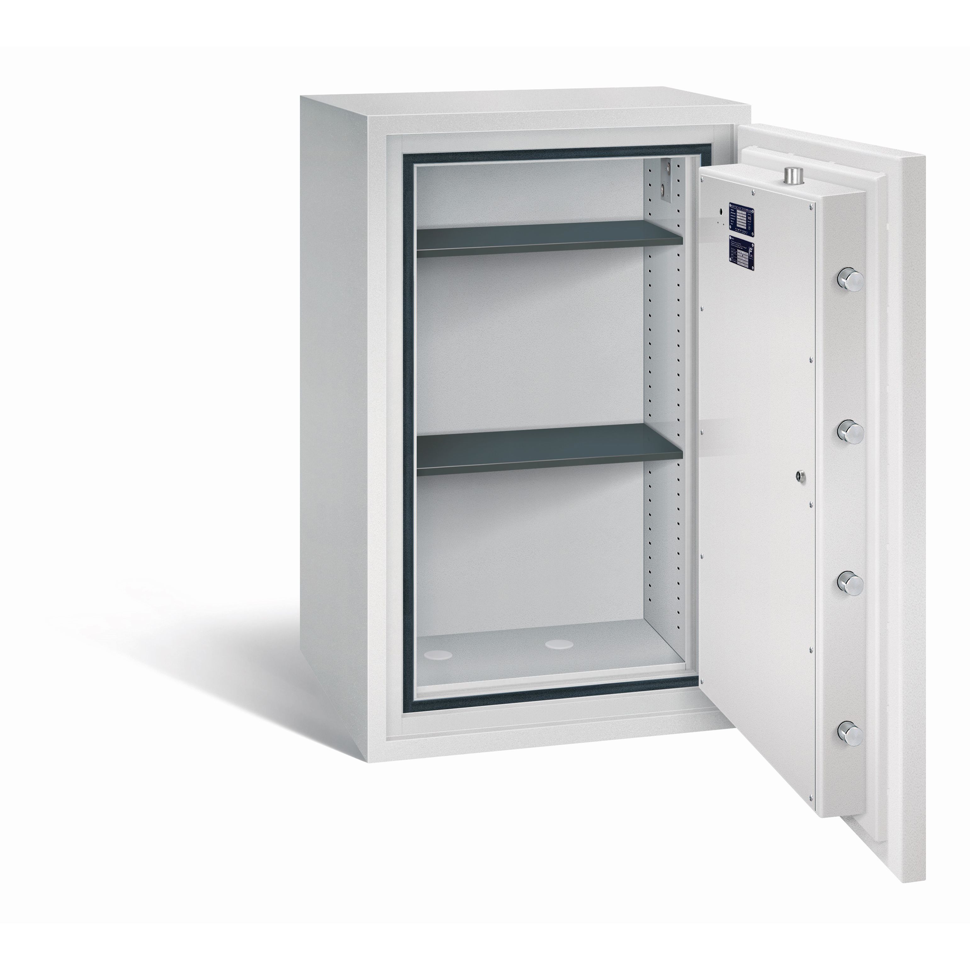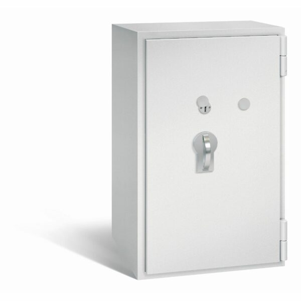 - Serienmäßig ist der Tresor mit zwei Doppelbart-Sicherheitsschlössern (je 2 Schlüssel) ausgestattet.