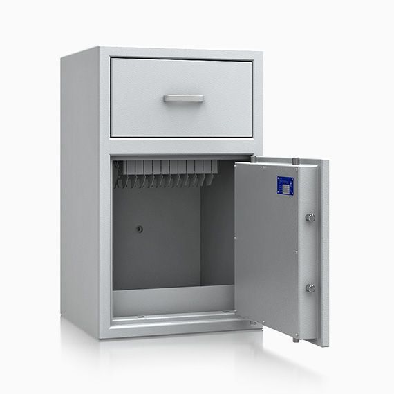 - Einwurf- / Deposittresor mit Einwurfschublade ohne Verschluss.
