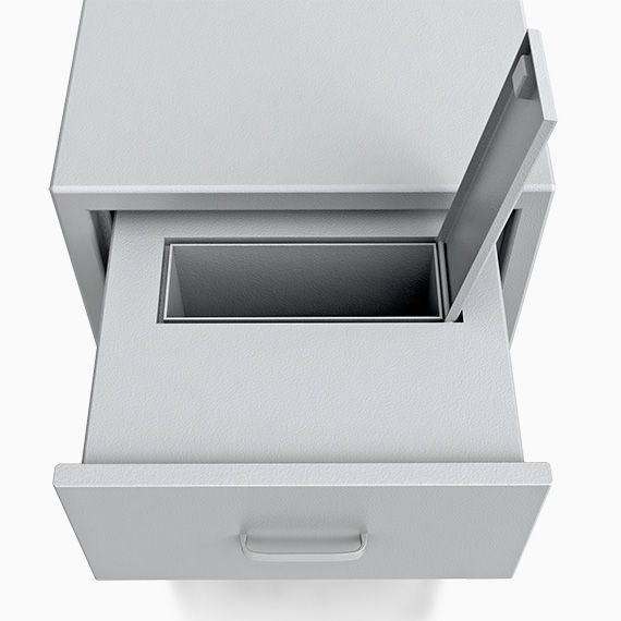 - Eine Rückholsicherung und die Möglichkeit die Schublade zu verschließen verhindern die unbefugte Entnahme des eingeworfenen Gegenstands.