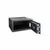 - < I-LED: interne LED-Beleuchtung an der Türöffnung. CEU-400: tragbares elektronisches Gerät, das für alle Safes desselben Hotels verwendet wird, mit doppelt änderbaren Codes, um die elektronische Notöffnungsfunktion zu nutzen. AT-400: Audit-Trail-Bericht der letzten 400 Ereignisse mit Datum und Uhrzeit. Berichte können mithilfe einer mitgelieferten Software gedruckt werden. (CEU-400 erforderlich). Türanschlag DIN links >