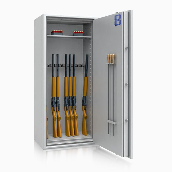 Waffentresor zur Lagerung von unbegrenzt vielen Langwaffen, 10 Kurzwaffen und Munition.