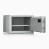 - Alternativ kann ein mechanisches Zahlenkombinationsschloss, ein elektronisches Tastenschloss oder ein elektronisches Tastenschloss mit mechanischer Notöffnung über Doppelbartschloss gegen Aufpreis gewählt werden.