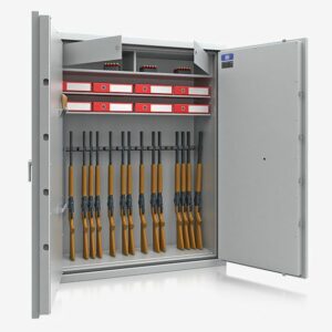 gewerblich bis € 10.000Außenmaße mm:H 1706 | B 950 | T 550Innenmaße mm:H 1515 | B 826 | T 344Gewicht:458 kgVolumen:430 Ltr.Anzahl Fachböden:1Anzahl Waffenhalter:15 -