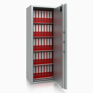 gewerblich bis € 150.000Außenmaße mm:H 848 | B 810 | T 725Innenmaße mm:H 695 | B 660 | T 480Gewicht:875 kgVolumen:220 Ltr.Anzahl Fachböden:1Anzahl Ordner:16